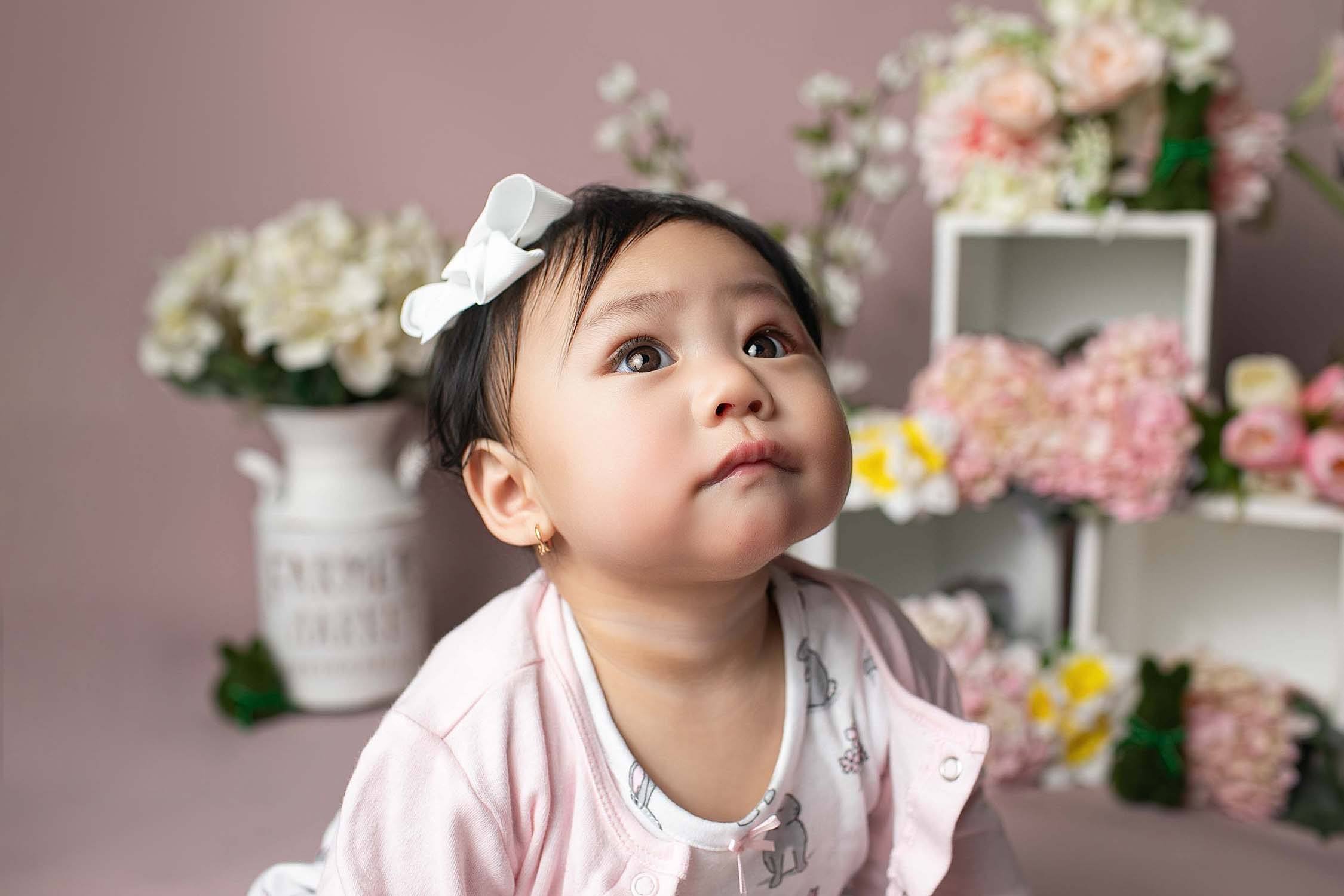 This sweet spring milestone session features baby Francis at 6 months old, celebrating her first Easter with soft florals and festive bunny touches. Combining milestone photos with seasonal themes creates portraits that are both timeless and meaningful. Perfect inspiration for families in Beaufort and Bluffton, SC.
